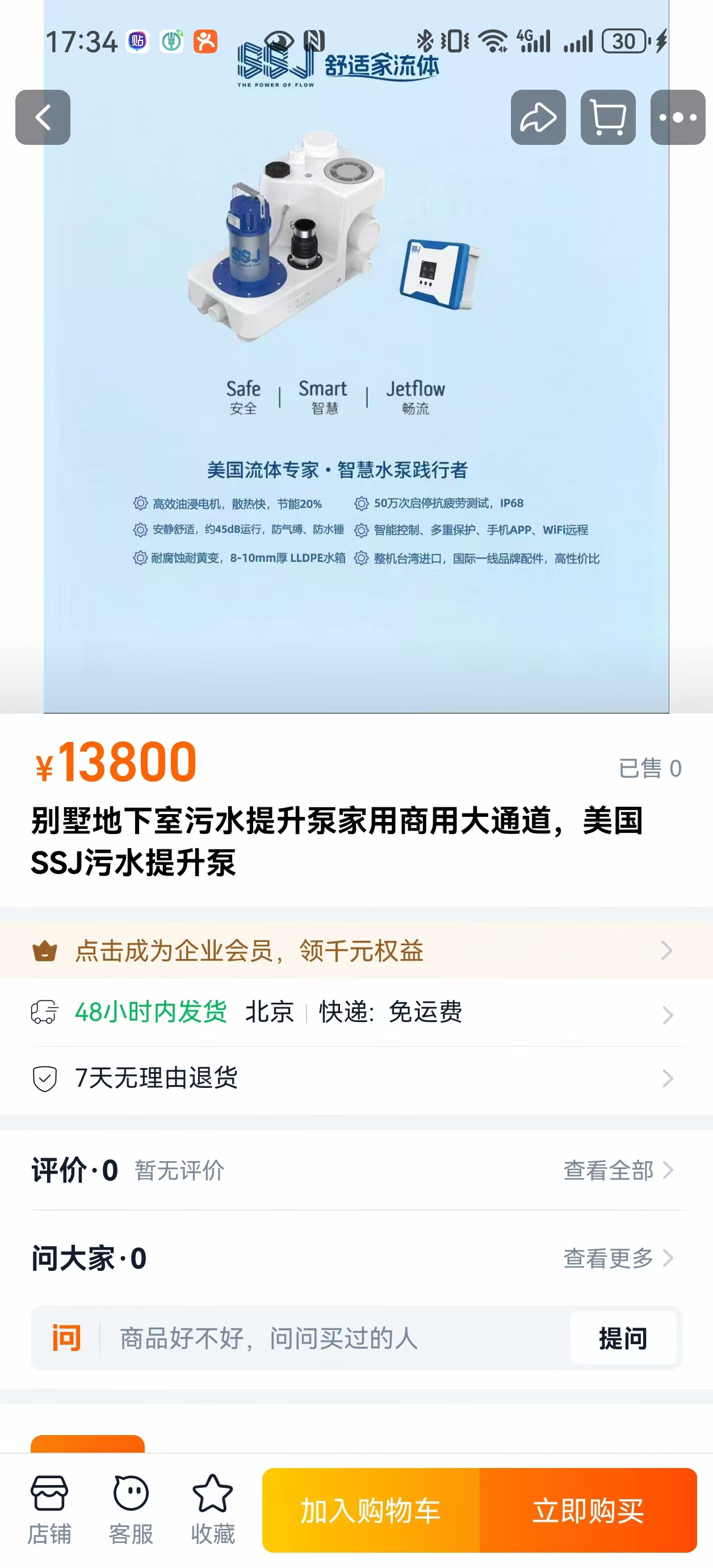 作为美国品牌、台湾整机原装进口的高端污水提升设备,SSJ污水提升泵凭借IP68全防水、整机浸油冷却、大通道无堵塞等核心技术,成为别墅地下室、商用空间排水系统的标杆选择。其市场价格严格遵循品牌定位与配置分级,形成了清晰、透明的价格体系,为不同场景的选型提供了明确参考。