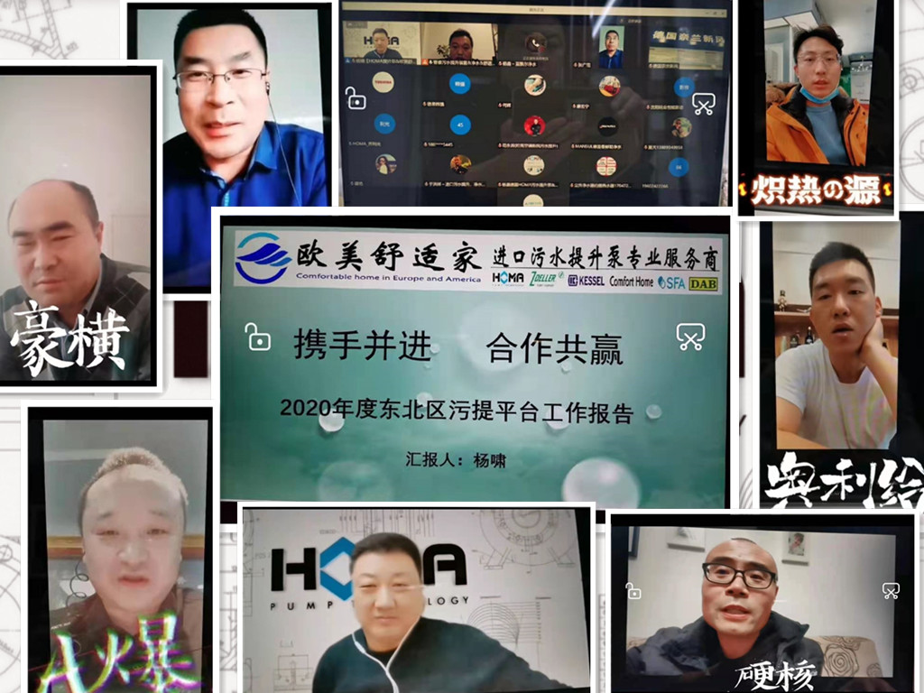2021年1月12日,因新冠疫情影响,响应国家减少聚集聚会的号召,2020年度欧美舒适家东北专业污水提升泵平台经销商年会改为线上进行,参会经销商人数50人,德国HOMA和美国卓勒等厂家代...